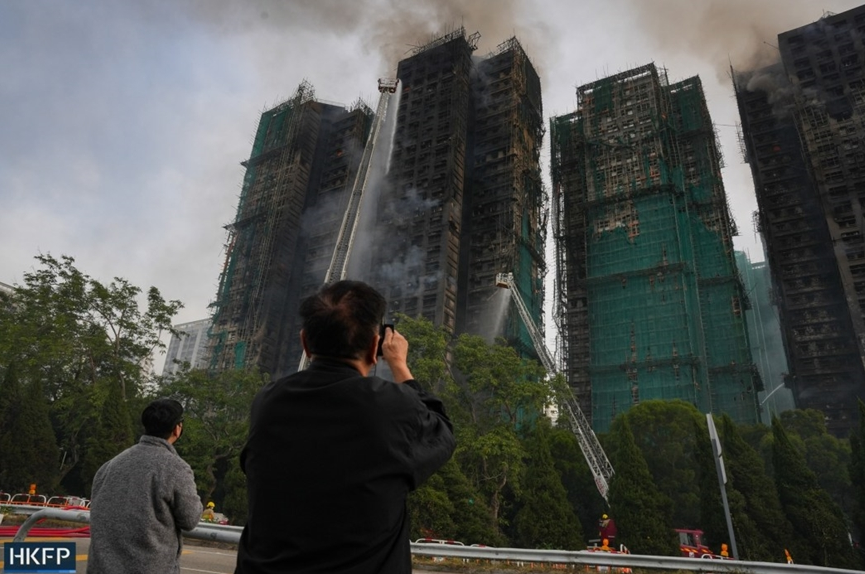 | Vụ hỏa hoạn thiêu rụi 7 tòa nhà chung cư ở quận Tai Po, Hong Kong hôm 26-11. Ảnh: HKFP |