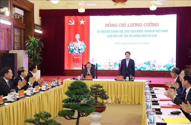 Phát biểu tại buổi làm việc, Chủ tịch nước Lương Cường đánh giá cao kết quả công tác của ngành Tòa án trong thời gian qua. Đồng thời nhấn mạnh, mặc dù trong điều kiện còn nhiều khó khăn, yêu cầu, nhiệm vụ đặt ra rất nặng nề, nhưng ngành Tòa án đã chủ động đề ra nhiều giải pháp hữu hiệu, tập trung lãnh đạo, chỉ đạo hoàn thành tốt nhiệm vụ được giao.