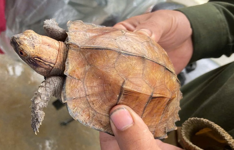 Cá thể rùa trên là loài rùa đầu to (tên khoa học Platysternon megacephalum). Đây là loài động vật thuộc Nhóm IB theo Nghị định 84/2021/NĐ-CP của Chính phủ – nhóm loài nguy cấp, quý hiếm, bị nghiêm cấm săn bắt, nuôi nhốt, mua bán, vận chuyển trái phép dưới mọi hình thức.