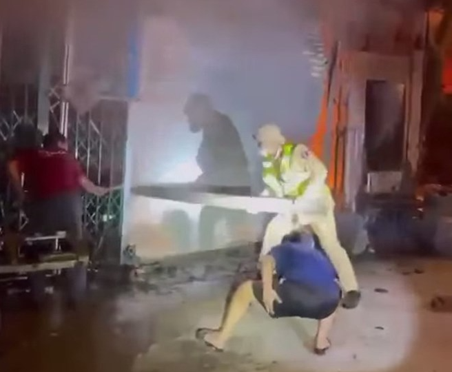 CSGT Nghệ An phá cửa, dập tắt vụ cháy nhà dân lúc rạng sáng, cứu được 11 người. Ảnh: Ngọc Anh