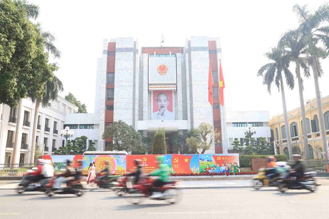 Dưới sự lãnh đạo của Đảng Cộng sản Việt Nam, trong 95 năm qua, đất nước ta đã đạt được những bước phát triển đột phá kỳ diệu. Trong ảnh: Đường phố Hà Nội trang hoàng mừng Đảng, mừng Xuân. Ảnh: Trần Vương