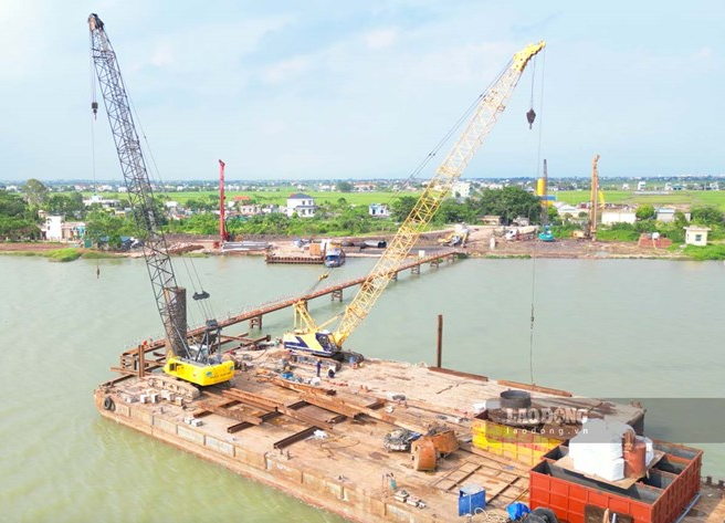 Cầu vượt sông Hồng trên tuyến cao tốc CT.08 có chiều dài 1.115m và bề rộng 24,75m; nối địa phận xã Hồng Vũ, tỉnh Hưng Yên và xã Xuân Hồng, tỉnh Ninh Bình. Ảnh: Lương Hà