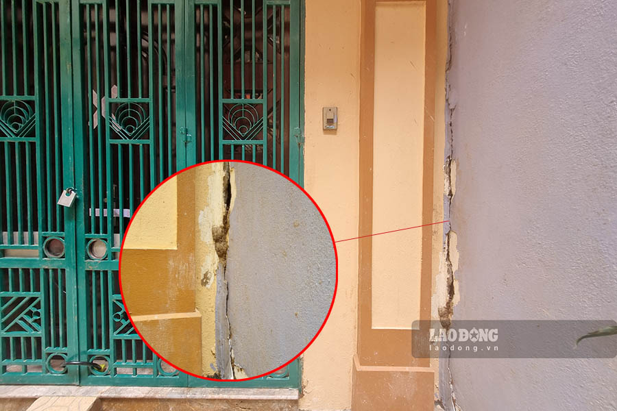 Vết nứt trên tường nhà dân trong ngõ 7 Giang Văn Minh - nơi xảy ra sự cố đào hầm metro. Ảnh: Tô Thế