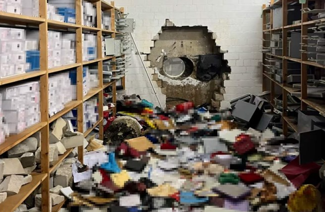 Lợi dụng thời điểm hầu hết các cửa hàng và ngân hàng đóng cửa từ tối 24.12, nhóm trộm đã âm thầm khoan thủng một bức tường bê tông dày, tiếp cận khu vực két sắt và phá hàng nghìn hộp gửi đồ của khách hàng.