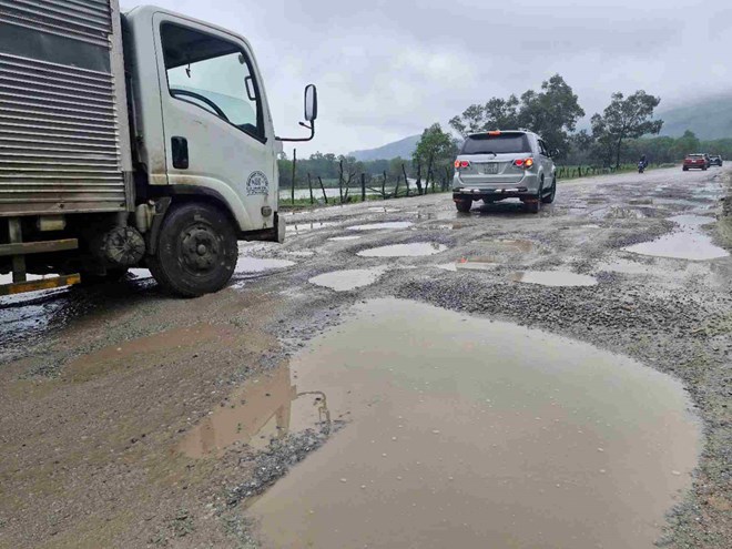 Mặt đường nhiều nơi bị bong tróc, tạo thành những ổ voi lớn, khi mưa xuống đọng đầy nước, lầy lội, gây khó khăn cho việc lưu thông của các phương tiện, nhất là mất an toàn đối với người đi xe máy, xe đạp.