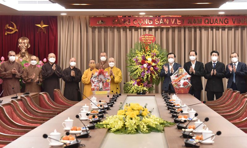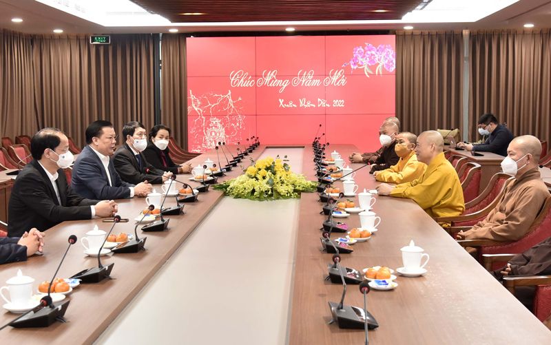 Bí thư Thành ủy Hà Nội Đinh Tiến Dũng tiếp đoàn Ban Trị sự Giáo hội Phật giáo Việt Nam thành phố đến thăm, chúc Tết Đảng bộ thành phố Hà Nội nhân dịp đón xuân Nhâm Dần 2022 và kỷ niệm 92 năm Ngày thành lập Đảng Cộng sản Việt Nam (3/2/1930-3/2/2022)
