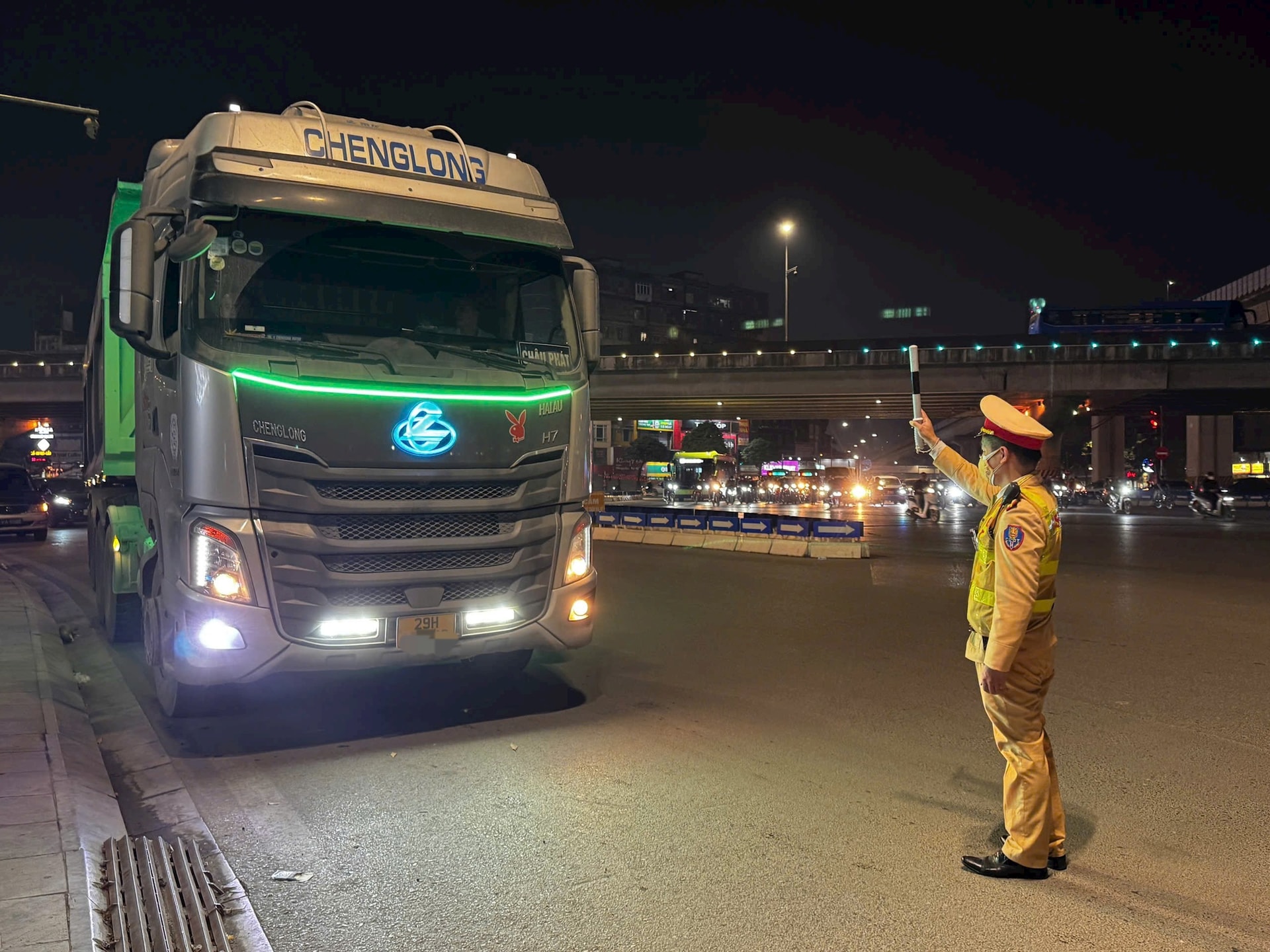 Tối 29-1, ghi nhận tại ngã tư Khuất Duy Tiến - Nguyễn Trãi, tổ công tác Đội Cảnh sát giao thông đường bộ số 7 (Phòng Cảnh sát giao thông - Công an thành phố Hà Nội) triển khai kiểm tra, xử lý các phương tiện ô tô tải lắp đặt, sử dụng đèn siêu sáng, còi hơi không đúng quy định, tiềm ẩn nguy cơ mất an toàn giao thông.