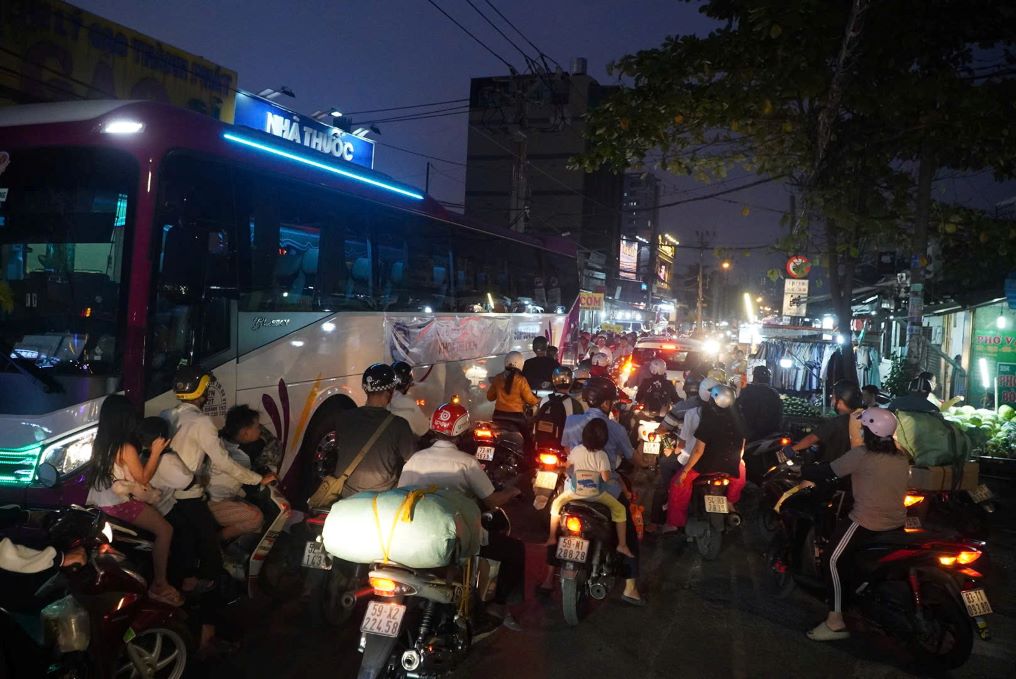 Phương tiện ùn ứ tại một nút giao trong chiều tối 18.12. Ảnh: Nguyên Chân