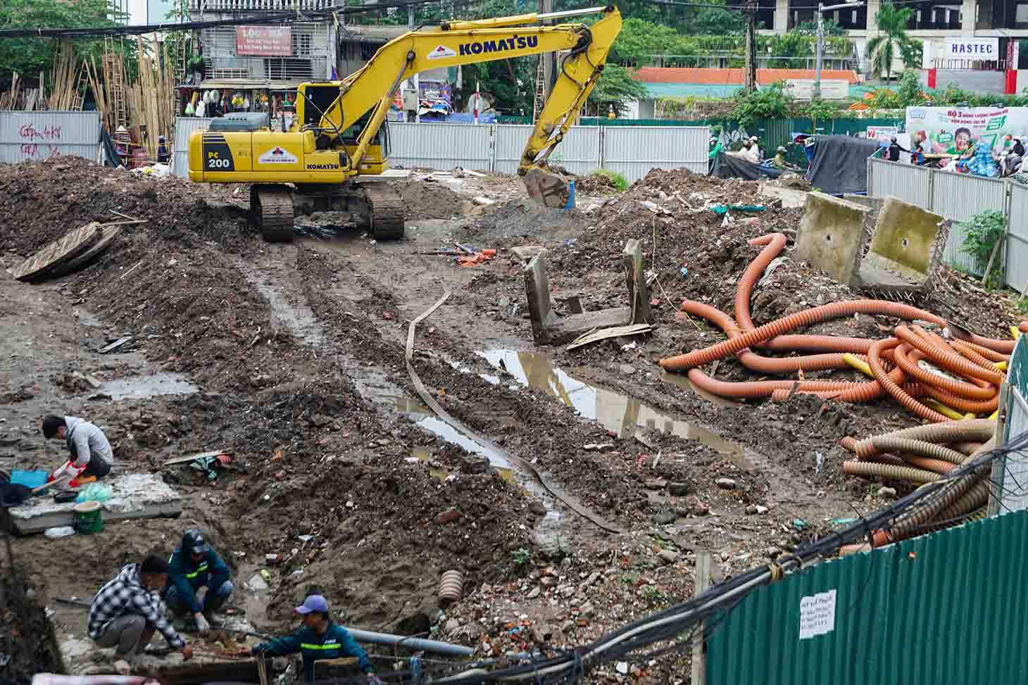 Trong khi đó, tại vị trí cầu vượt Láng Hạ – Đê La Thành, một số hạng mục đã được khởi động. Máy xúc, máy đào được tập kết và công nhân đang tiến hành thi công các hạng mục thuộc dự án.