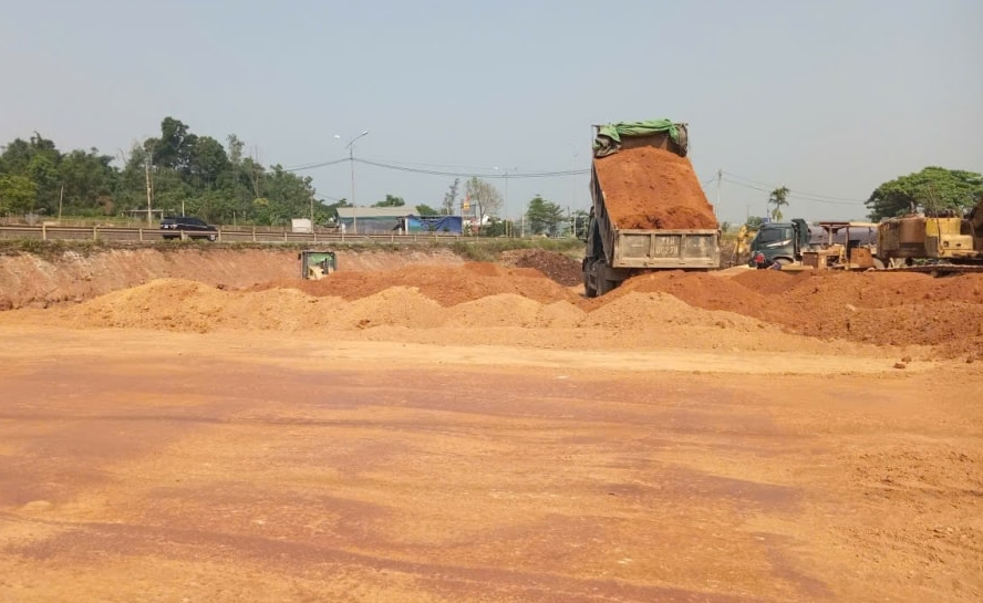 Các phương tiện đang khẩn trương thi công đoạn tuyến qua thôn Lại An (xã Gio Linh) - Ảnh: Viết Hảo