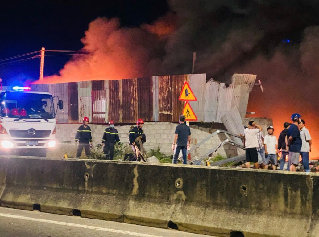 Hiện trường vụ cháy nằm ven Quốc lộ 1 nên lực lượng chức năng địa phương đã có mặt điều tiết giao thông, đảm bảo an toàn cho các phương tiện lưu thông qua khu vực.