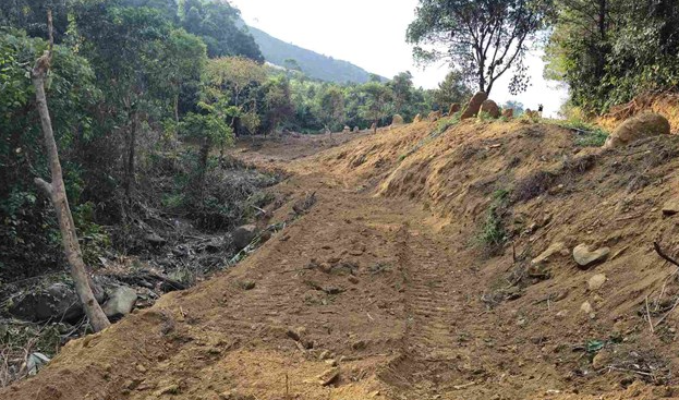 Hiện trường vụ san gạt đất lâm nghiệp, lân suối tự nhiên trên đèo Bảo Lộc. Ảnh: Phúc Khánh