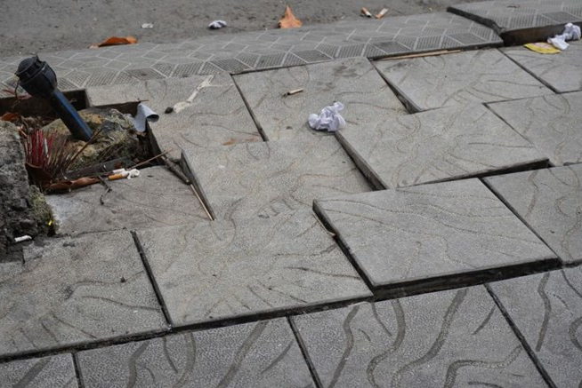 Tuy nhiên, hiện nay dọc các tuyến phố trung tâm của Đà Nẵng như Xô Viết Nghệ Tĩnh, Lê Thanh Nghị, Nguyễn Hoàng, hay Pasteur, không khó để bắt gặp hình ảnh những vỉa hè mới tinh nhưng lại gập ghềnh, lởm chởm. Nhiều đoạn vỉa hè biến thành những “cái bẫy” lồi lõm, nước đọng thành vũng sau mỗi cơn mưa, thậm chí cỏ dại đã kịp len lỏi mọc lên qua các kẽ gạch. Là một hộ kinh doanh trên đường Xô Viết Nghệ Tĩnh, ông Lê Văn Hữu bức xúc: "Mới qua một mùa mưa mà đã thấy gập ghềnh như thế này rồi", ông Hữu nói.