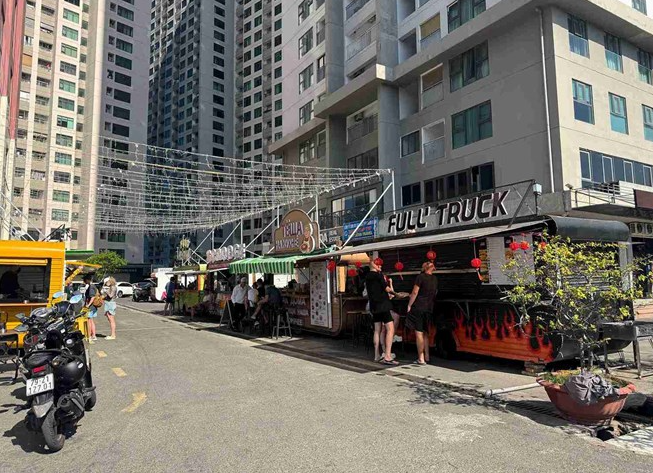 Cụ thể, các xe đồ ăn lưu động (food truck) hoạt động dưới khu vực sân chung cư thường xuyên mở nhạc công suất lớn liên tục từ tối đến tận 4-7 giờ sáng mỗi ngày.