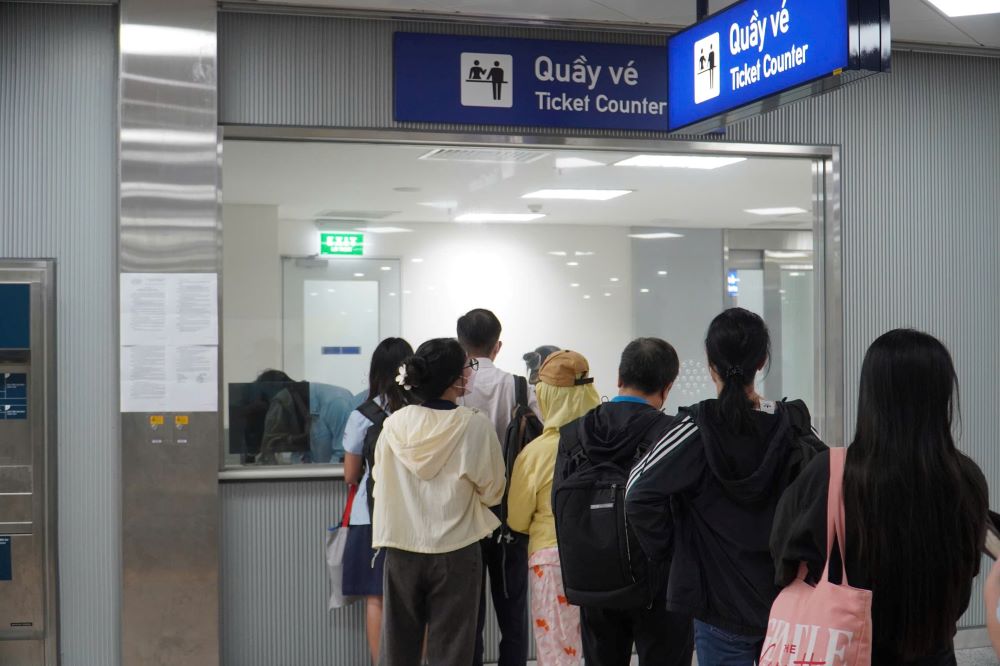 Hành khách mua vé đi tàu Metro số 1. Ảnh: Thanh Chân