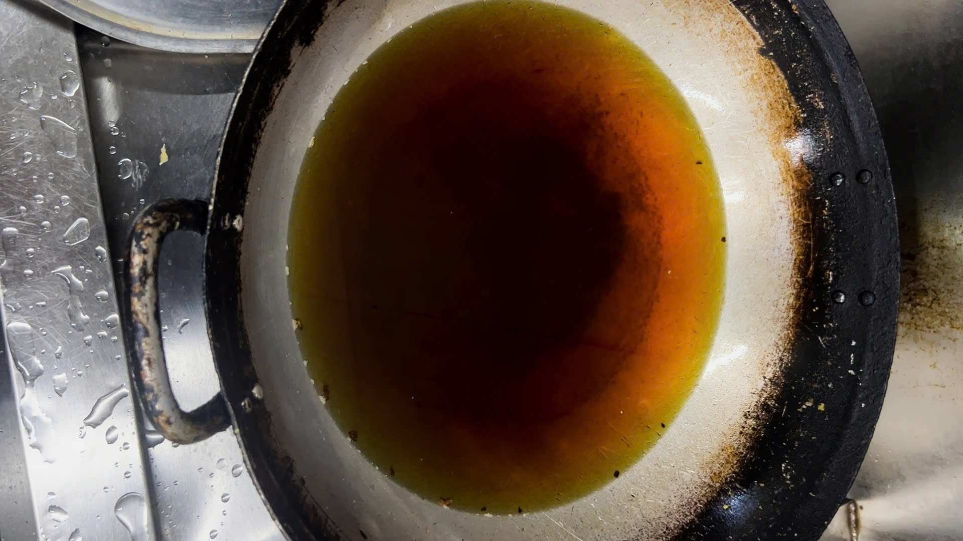 Đáng chú ý, ngay trên khu vực bếp nấu có một chảo dầu đã chuyển màu nâu sẫm.