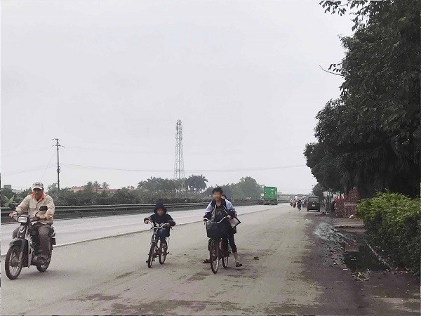 Thiếu đường gom, không ít người dân đi ngược chiều trên Quốc lộ 5, Hải Dương. Ảnh: Hà Vi