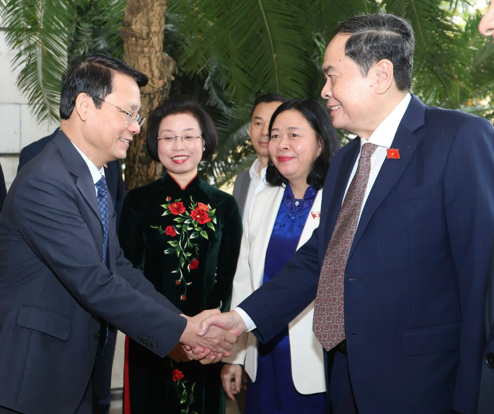 Chủ tịch Quốc hội Trần Thanh Mẫn, Bí thư Thành ủy Hà Nội Bùi Thị Minh Hoài với các đại biểu dự kỳ họp. Ảnh: Viết Thành