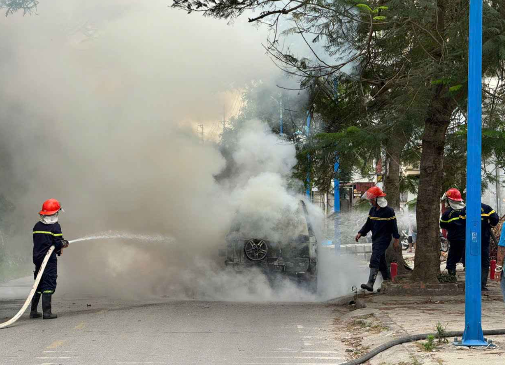 Tuy nhiên, chỉ ít phút sau khi dừng đỗ, xe bất ngờ bốc cháy dữ dội, ngọn lửa nhanh chóng bao trùm phần đầu và khoang xe, kèm theo khói đen bốc cao.