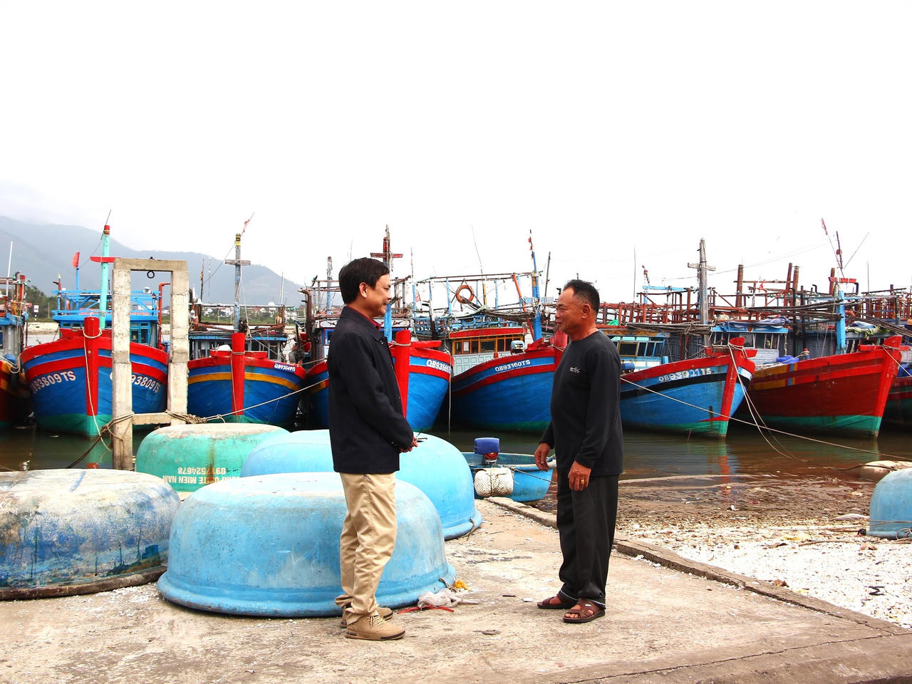 Cán bộ xã Hòa Trạch trao đổi với ngư dân về việc sắp xếp thời gian tham gia bầu cử.