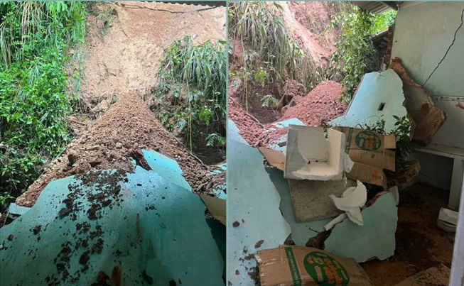 Sạt lở gây sập tường nhà bà Nguyễn Thị Luyện (trú phường Bồng Sơn, Gia Lai). Ảnh: Trọng Nguyễn