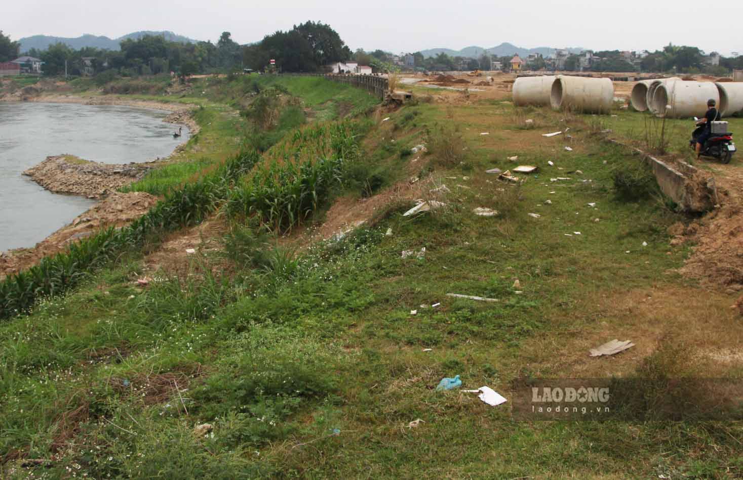 Hệ thống mương tưới tiêu xây dựng chạy dọc bờ sông hiện cũng không thể sử dụng do đất bờ bãi đã được thu hồi để xây khu đô thị. Ảnh: Việt Bắc.