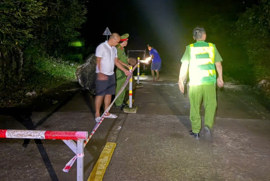 Nhận được tin báo, lực lượng chức năng đã có mặt tại hiện trường, tổ chức căng dây cảnh báo, hướng dẫn người dân đi lại an toàn và phối hợp với đơn vị quản lý đường bộ lên phương án di dời tảng đá.