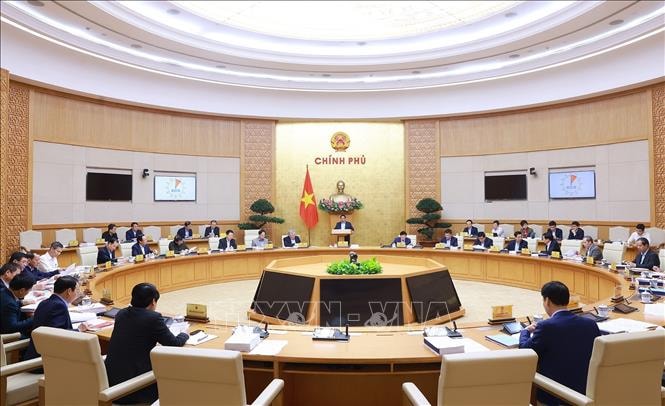 Phiên họp Chính phủ chuyên đề về xây dựng pháp luật tháng 4-2025. Ảnh: Dương Giang/TTXVN