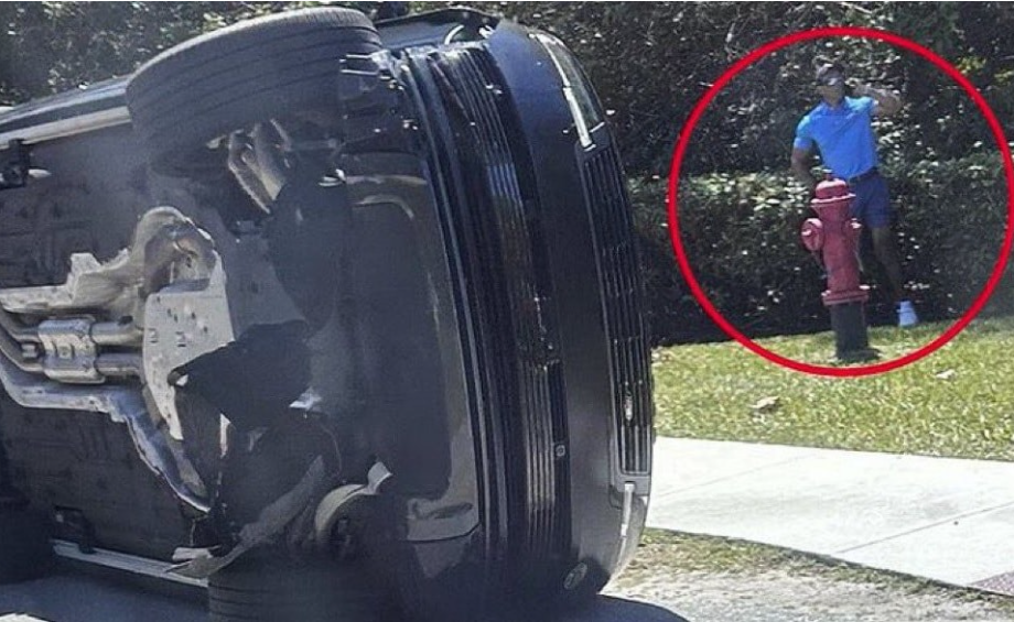 Tiger Woods được nhìn thấy ở hiện trường vụ tai nạn. Ảnh chụp màn hình.