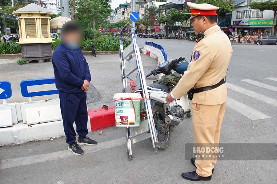 Trường hợp chở theo đồ đạc che lấp biển số cũng bị lực lượng chức năng kiểm tra, tuyên truyền nhắc nhở.