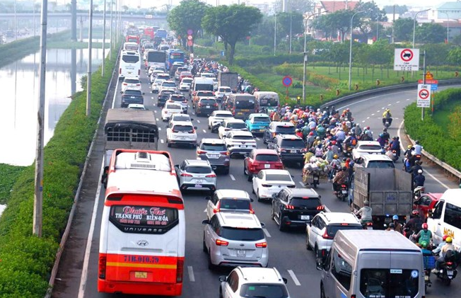 Quốc lộ 1 nối TPHCM với các tỉnh miền Tây thường xuyên ùn tắc dịp lễ, Tết. Ảnh: Minh Quân