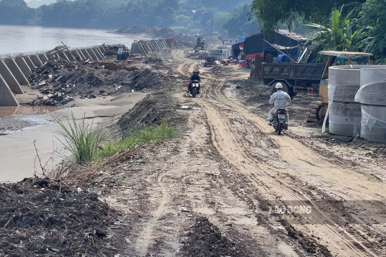 “Ảnh hưởng của mưa lũ, nước sông Hồng thường xuyên dâng cao, dù nhà thầu đã tập trung nhân lực, máy móc, nhưng không thể đẩy nhanh được tiến độ.