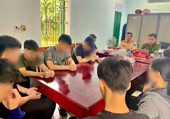 Nhóm 6 thanh, thiếu niên chạy xe lạng lách, đánh võng bị triệu tập để răn đe, xử lý. Ảnh: Công an Hà Tĩnh.