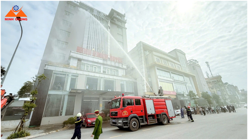 Tuyên truyền, thực tập phương án chữa cháy và cứu nạn, cứu hộ tại khách sạn Minh Cường