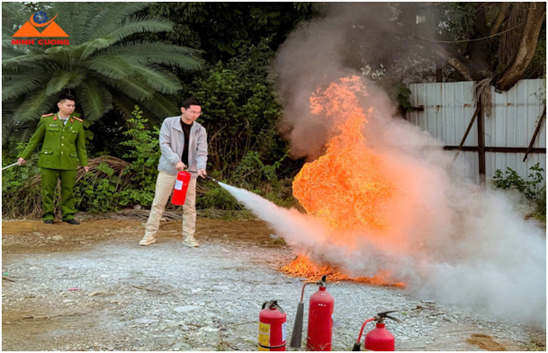 | Hướng dẫn sử dụng bình chữa cháy để dập tắt đám cháy giả định |