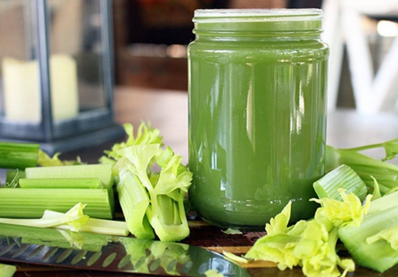 Một trong những loại nước ép dùng buổi sáng có thể hỗ trợ giảm axit uric là nước ép cần tây. Ảnh: Thu Thủy