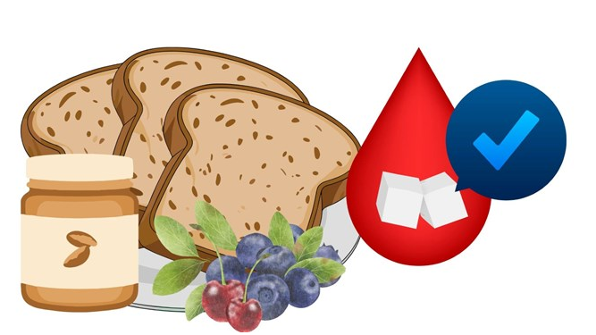 Bánh mì nguyên cám cung cấp chất xơ giúp làm chậm quá trình chuyển hóa và hấp thu glucose, đồng thời hỗ trợ sức khỏe đường ruột. Các loại quả mọng và hạt chia cũng giàu chất xơ, bổ sung thêm dưỡng chất cần thiết.